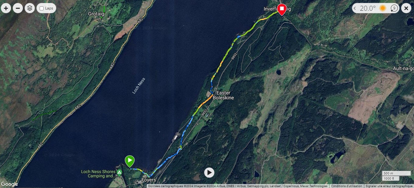 Le Loch Ness faisant près de 75km de circonférence, en faire le tour en une journée de randonnée est impossible. Nous avons donc choisi de faire une randonnée en nous concentrant sur la rive sud et avec un peu de dénivelé tout de même. D’une distance d’environ 13 km, elle offre quelques beaux points de vue et un passage par les chutes d’eau de Foyers. Le parcours précis est disponible sur Komoot.