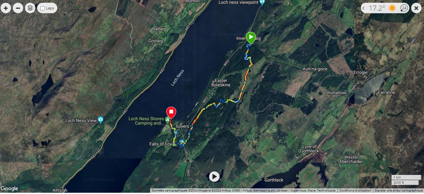 Le Loch Ness faisant près de 75km de circonférence, en faire le tour en une journée de randonnée est impossible. Nous avons donc choisi de faire une randonnée en nous concentrant sur la rive sud et avec un peu de dénivelé tout de même. D’une distance d’environ 13 km, elle offre quelques beaux points de vue et un passage par les chutes d’eau de Foyers. Le parcours précis est disponible sur Komoot.