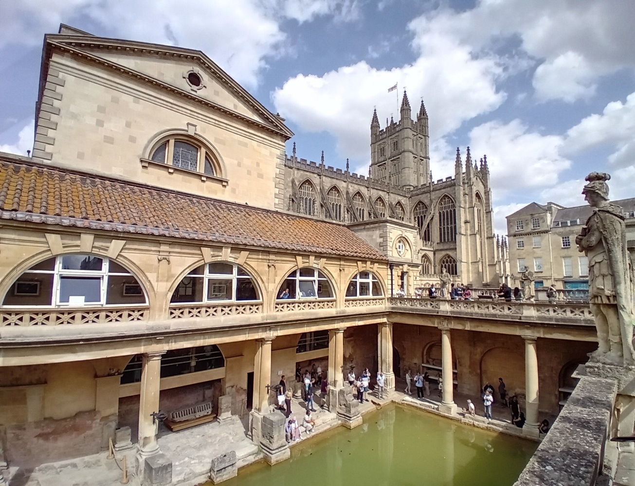 Bath devint alors la première station thermale d’Angleterre et ses Thermes restent actuellement l’un des complexes balnéaires romains les mieux conservés au monde. Alimentées par des eaux géothermales pouvant atteindre jusqu’à 46°C en surface, les sources ont longtemps été réputées pour leurs vertus curatives, incitant Romains, puis visiteurs des siècles suivants, à venir se baigner, se soigner et socialiser.